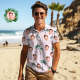 Men’s Custom Face Polo Shirt Pink Flamingos Personalized Hawaiian Golf Shirts Gift for Him